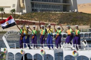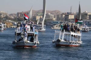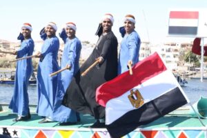 بديفيليه نهري بديع انطلقت صباح اليوم الخميس بدءت أولى فعاليات مهرجان أسوان الدولي العاشر للثقافة والفنون العاشر حيث قدم اكثر من 21 فرقة للفنون الشعبية من مصر والدول المشاركة بالمهرجان على صفح نهرالنيل الذى شهد تزين النيل بأعلام مصر والدول العشر المشاركة فى موكب فني تفاعل معها الجمهور على شاطئ النهر والمراكب النيلية، حيث أدت كل فرقة استعراضاتها الفولكلورية فوق أسطح المراكب فى كرنفال استعراضي يعبر عن الفنون بوصفها لغة التلاقي الحضاري بين الشعوب، متنقلين من مركب إلى آخر، وسط تفاعل كبير من السائحين المتواجدين بأسوان على متن الفنادق العائمة، ومواطنى أسوان وهو الذى يعكس روح التقارب والصداقة بين الشعوب .