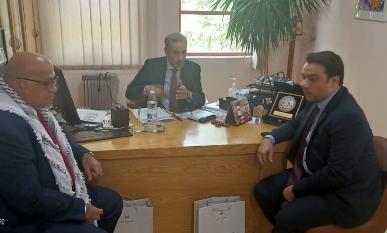 وكيفية التبادل الطلابى والمنح الدراسية وتبادل الخبرات والمشروعات البحثية، وتفقد وفد السفارة الفلسطينية بعض القاعات الدراسية بالجامعة والمباني والمنشٱت داخل الجامعة.