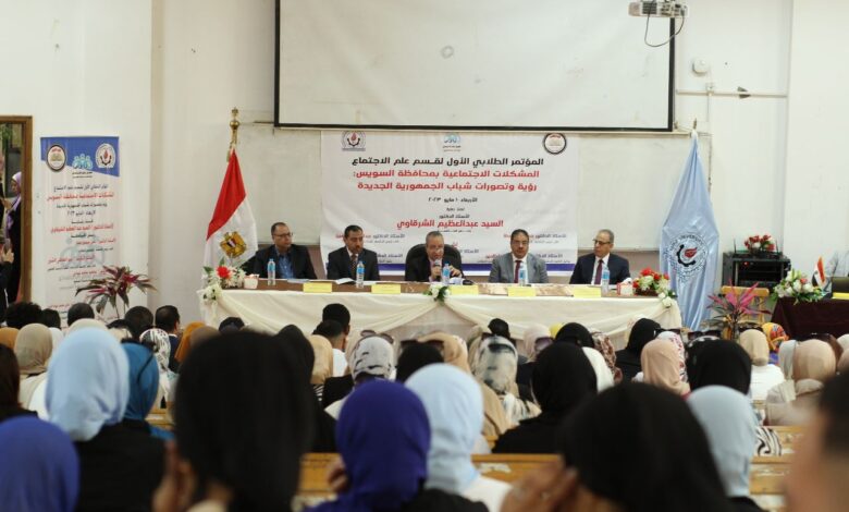 بالتوازى مع الحوار الوطنى الذى أطلقه ودعمه وأيده سيادة الرئيس عبد الفتاح السيسى رئيس الجمهورية لحل الأزمات والمشكلات التى قد تعوق مسيرة البناء والتطور والتقدم والرخاء للدولة المصرية الديمقراطية الجديدة أفتتح اليوم الأربعاء الموافق ١٠ مايو ٢٠٢٣ الأستاذ الدكتور السيد الشرقاوي رئيس جامعة السويس المؤتمر الطلابي لقسم علم الإجتماع بكلية الآداب والذي نُظِمَ برعايته والأستاذ الدكتور على حسين عطا نائب رئيس الجامعة لشئون التعليم والطلاب، الأستاذ الدكتور عبد العاطي لاشين نائب رئيس الجامعة لشئون الدراسات العليا والبحوث، الأستاذ الدكتور سعيد حامد عبادي نائب رئيس الجامعة لشئون خدمة المجتمع وتنمية البيئة بعنوان المشكلات الإجتماعية بمحافظة السويس “رؤية وتصورات شباب الجمهورية الجديدة” ، وذلك باشراف الأستاذ الدكتور محمد مازن جلال عميد الكلية ورئيس المؤتمر، والأستاذ الدكتور هاني بهاء الدين وكيل الكلية وأمين المؤتمر، والدكتور جبرالله عباس حسن مقرر المؤتمر، وبحضور الأستاذ الدكتور عبد الوهاب جودة الحايس أستاذ علم الإجتماع كليةالاداب جامعةعين شمس، والأستاذ الدكتور محمد حسين أنور مدرس علم الإجتماع المساعد ومنسق المؤتمر، وبمشاركة أساتذة علم الإجتماع بالعديد من الجامعات المصرية.