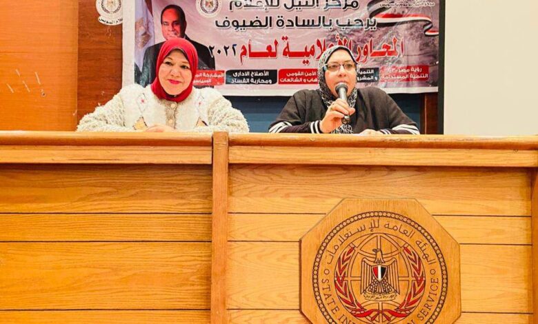 المجتمع المدنى هدف من أهداف التنمية المستدامة للدولة المصرية الجديدة والحديثة، وفى إطار محور المشاركة المجتمعية الهيئة العامة للإستعلامات نظم مركز النيل للاعلام بالسويس برئاسة ا.ماجدة عشماوى اليوم الخميس الموافق ١٢ يناير ٢٠٢٣ ندوة حول العنف الأسرى الأسباب والحلول حاضر فيها ا. سهام عمار فرغلى مدير عام إدارة شئون المرأة بمديرية التضامن الإجتماعى بحضور مديريات الخدمات والشركات الصناعية بمحافظة السويس .